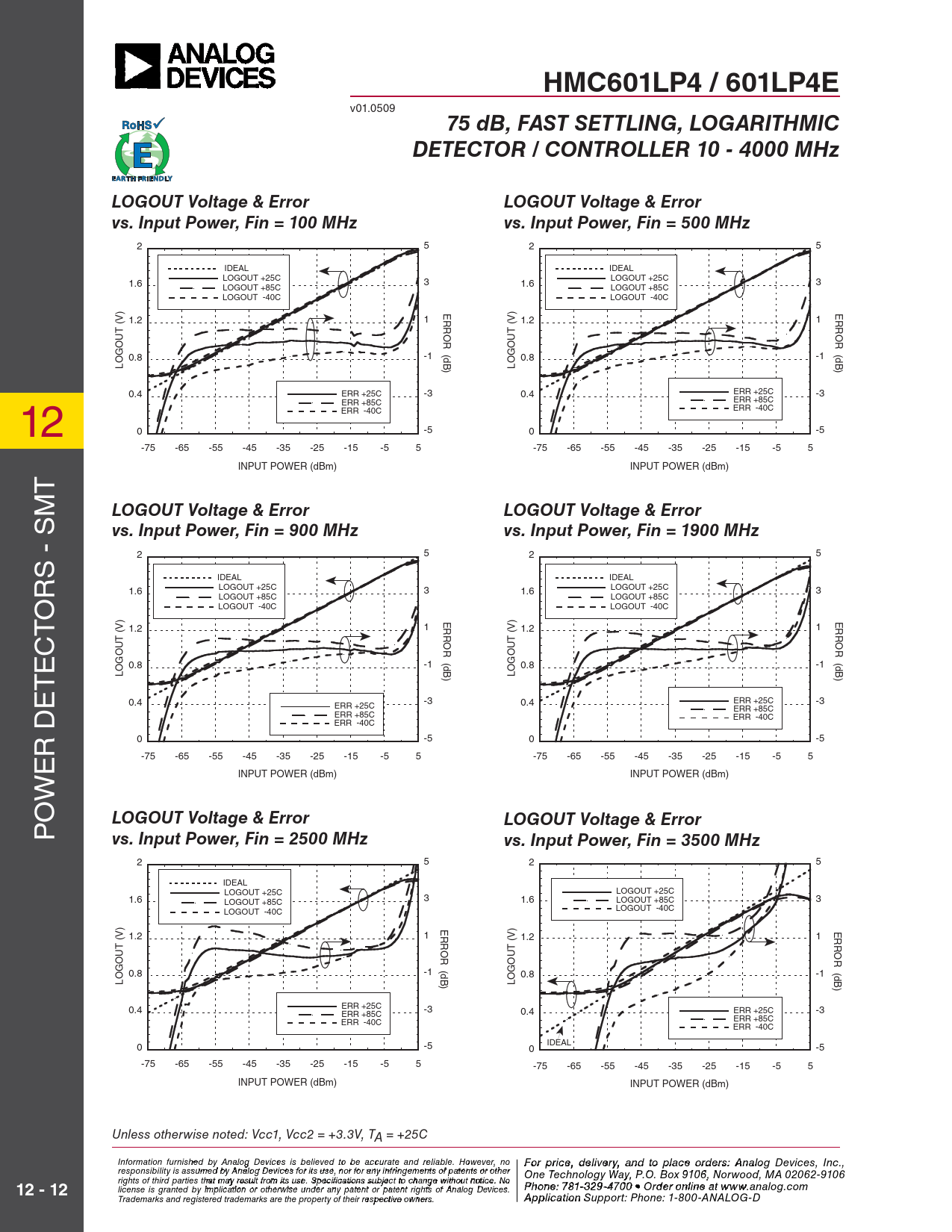 HMC601LP4 / 601LP4E. 75 dB, FAST SETTLING, LOGARITHMIC. DETECTOR / CONTROLLER 10 - 4000 MHz. LOGOUT Voltage & Error