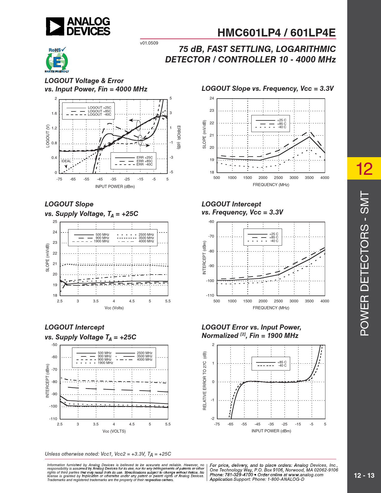 HMC601LP4 / 601LP4E. 75 dB, FAST SETTLING, LOGARITHMIC. DETECTOR / CONTROLLER 10 - 4000 MHz
