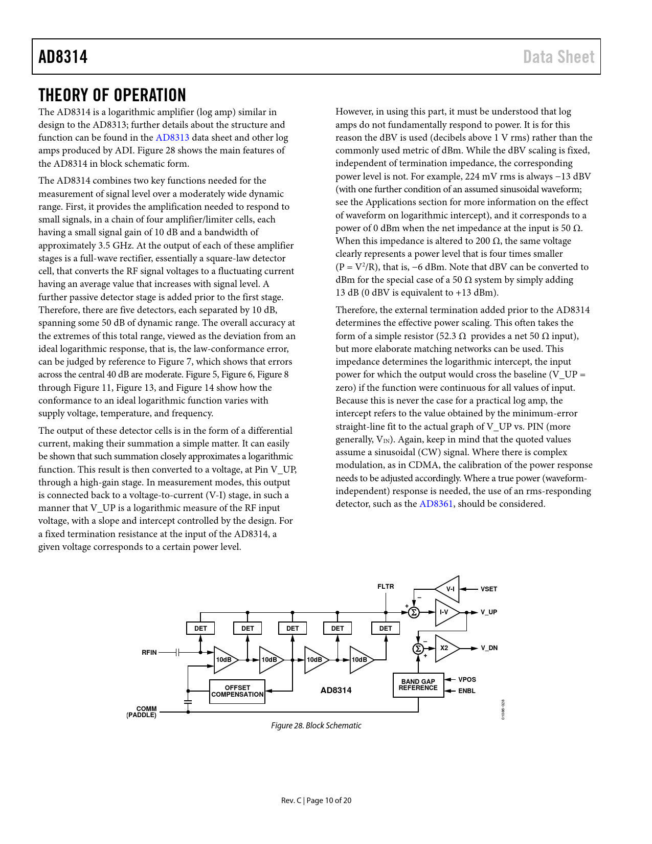 20 /10 — AD8314. Data Sheet. THEORY OF OPERATION. FLTR. V-I. VSET. I-V. V_UP. DET. …