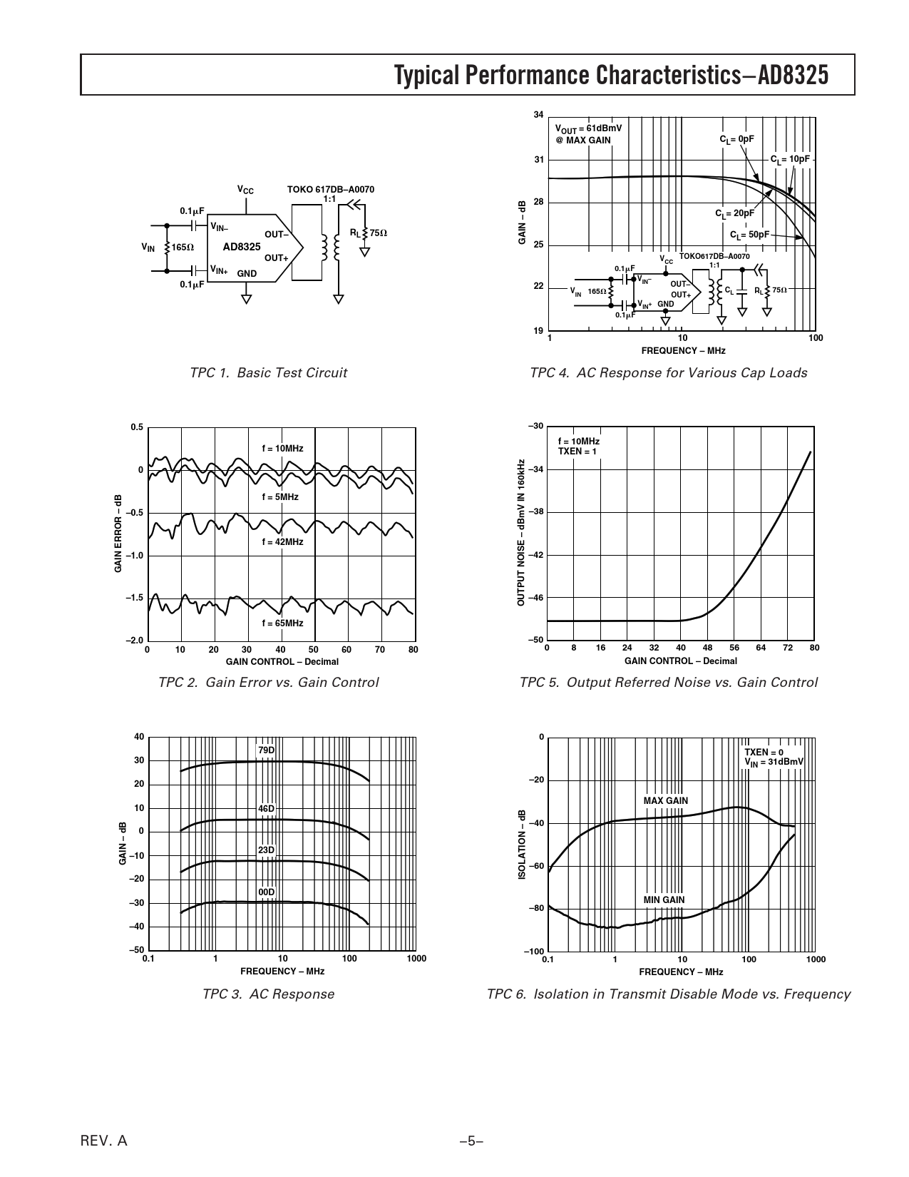Typical Performance Characteristics– AD8325 VOUT = 61dBmV @ MAX GAIN L= 0pF CL= 10pF VCC TOKO 617DB–A0070 1:1 0.1 CL= 20pF VIN–
