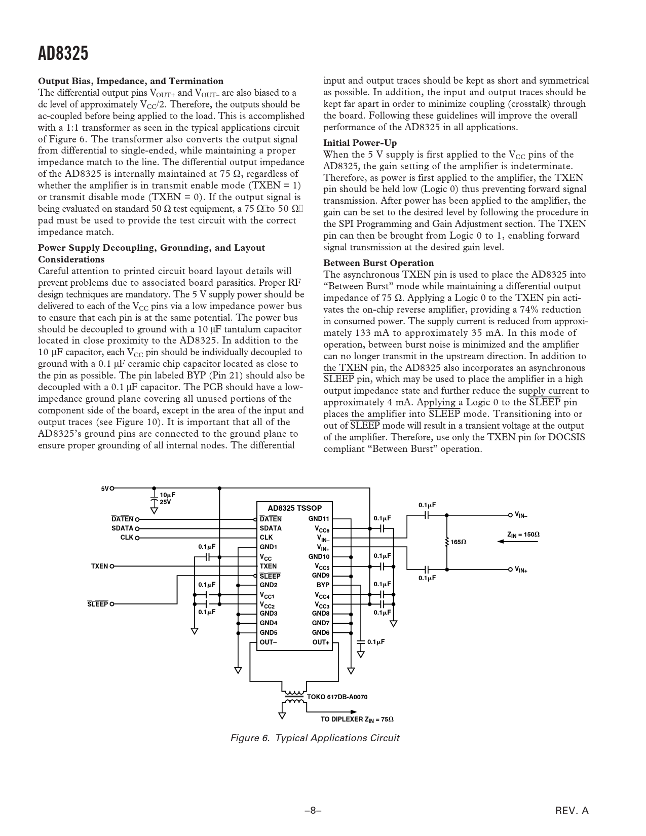 AD8325 Output Bias, Impedance, and Termination Initial Power-Up Power Supply Decoupling, Grounding, and Layout