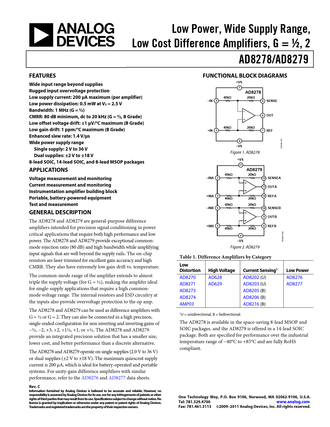 Datasheet AD8278, AD8279 (Analog Devices)