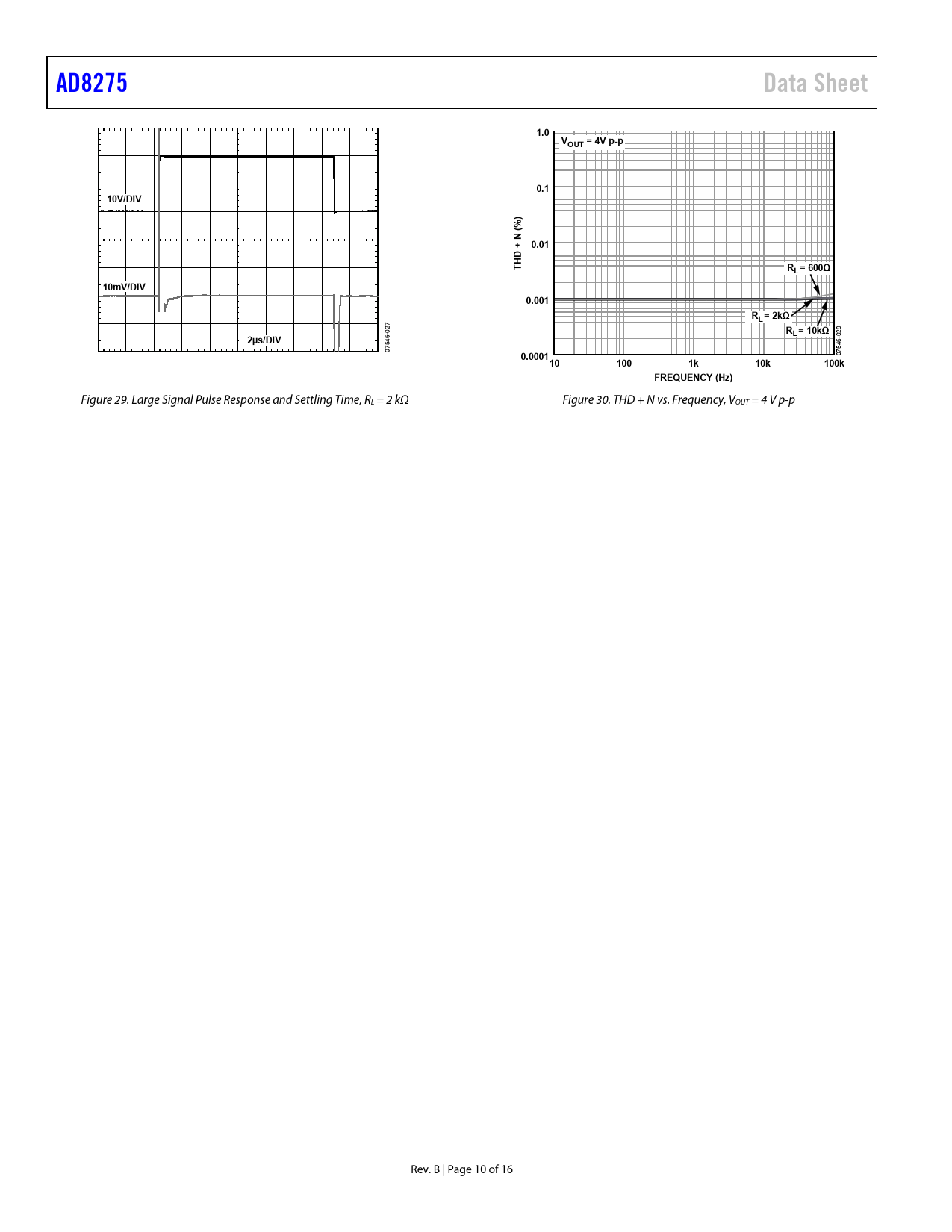 AD8275. Data Sheet. 1.0. VOUT = 4V p-p. 0.1. 10V/DIV. ) (% N + 0.01. D H T. RL= 600Ω. 10mV/DIV. 0.001. RL= 2kΩ. L = 10kΩ. 2µs/DIV. 0.000110. 100. 10k