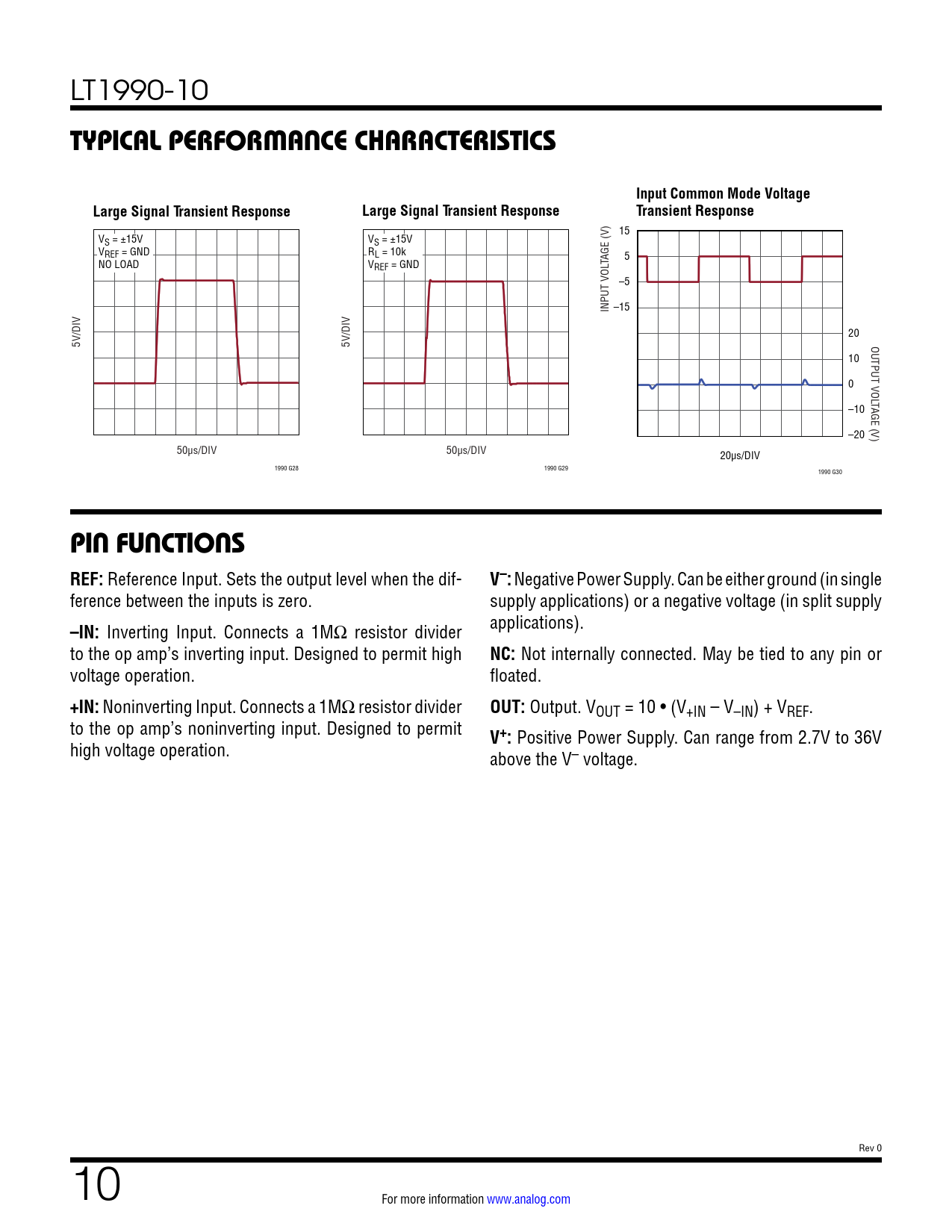 Positive Power Supply. Can range from 2.7V to 36V high voltage operation. above the V– voltage. Rev 0 10 For more information www.analog.com Document Outline Features Applications Typical Application Description Absolute Maximum Ratings Pin Configuration Order Information 3V/5V Electrical Characteristics Electrical Characteristics ±15V Electrical Characteristics Electrical Characteristics Typical Performance Characteristics Pin Functions Block Diagram Applications Information Package Description Typical Applications Related Parts