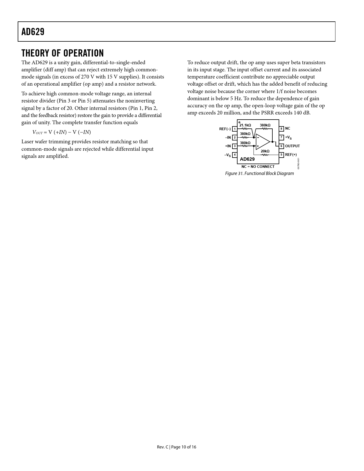 AD629. THEORY OF OPERATION. 21.1kΩ. 380kΩ. REF(–) 1. 8 NC. –IN 2. 7 +VS. +IN 3. 6 OUTPUT. 20kΩ. REF(+). NC = NO CONNECT
