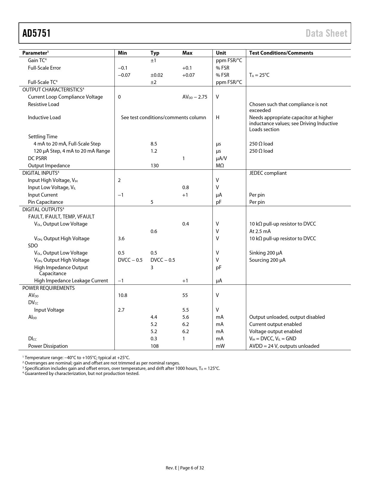 Páginas / Página32 / 6 — AD5751. Data Sheet. Parameter1. Min Typ Max Unit Test. Conditions/Comments
