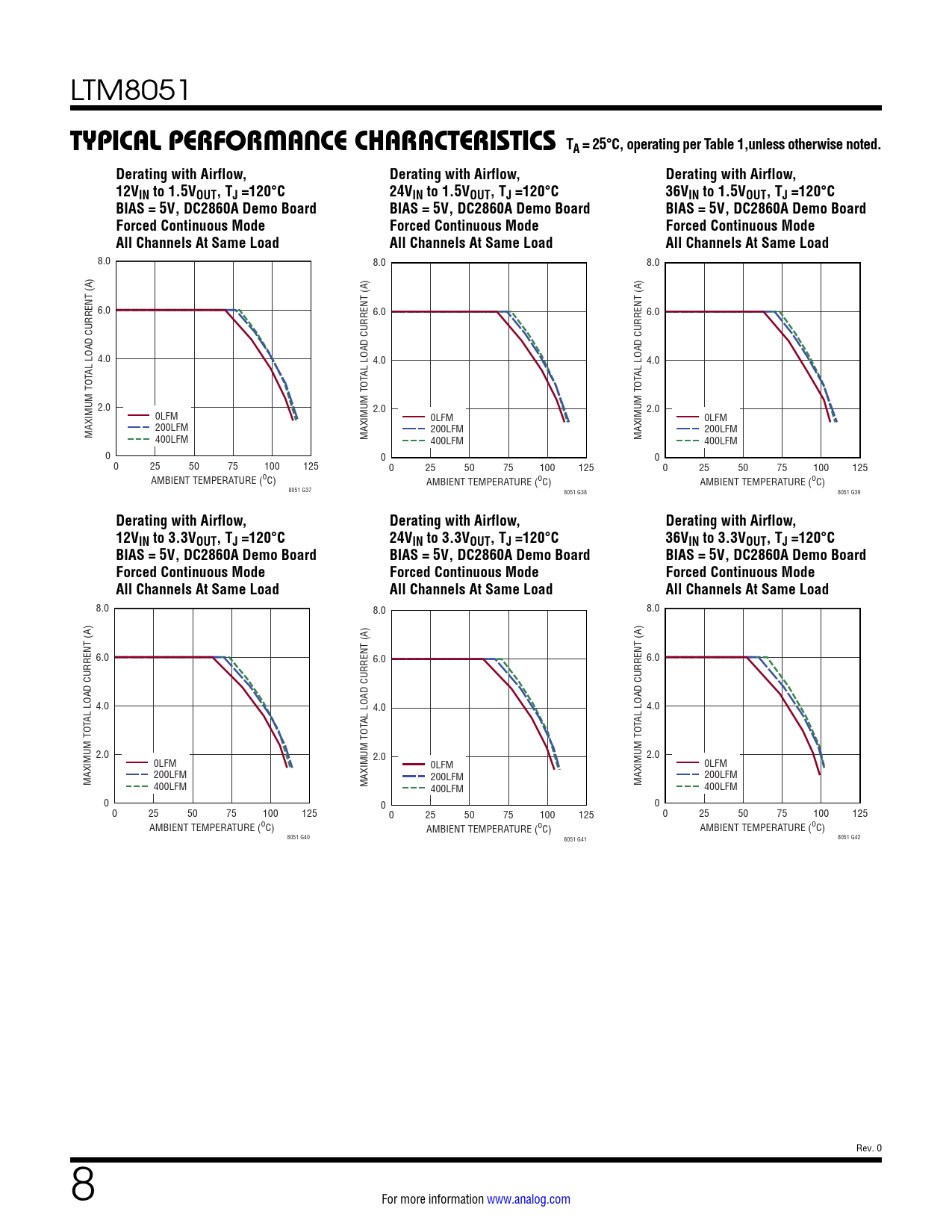 8.0 8.0 8.0 6.0 6.0 6.0 4.0 4.0 4.0 AL LOAD CURRENT (A) AL LOAD CURRENT (A) AL LOAD CURRENT (A) 2.0 2.0 2.0 0LFM 0LFM 0LFM 200LFM MAXIMUM TOT 200LFM 200LFM 400LFM MAXIMUM TOT 400LFM MAXIMUM TOT 400LFM 0 0 0 0 25 50 75 100 125 0 25 50 75 100 125 0 25 50 75 100 125 AMBIENT TEMPERATURE (oC) AMBIENT TEMPERATURE (oC) AMBIENT TEMPERATURE (oC) 8051 G37 8051 G38 8051 G39