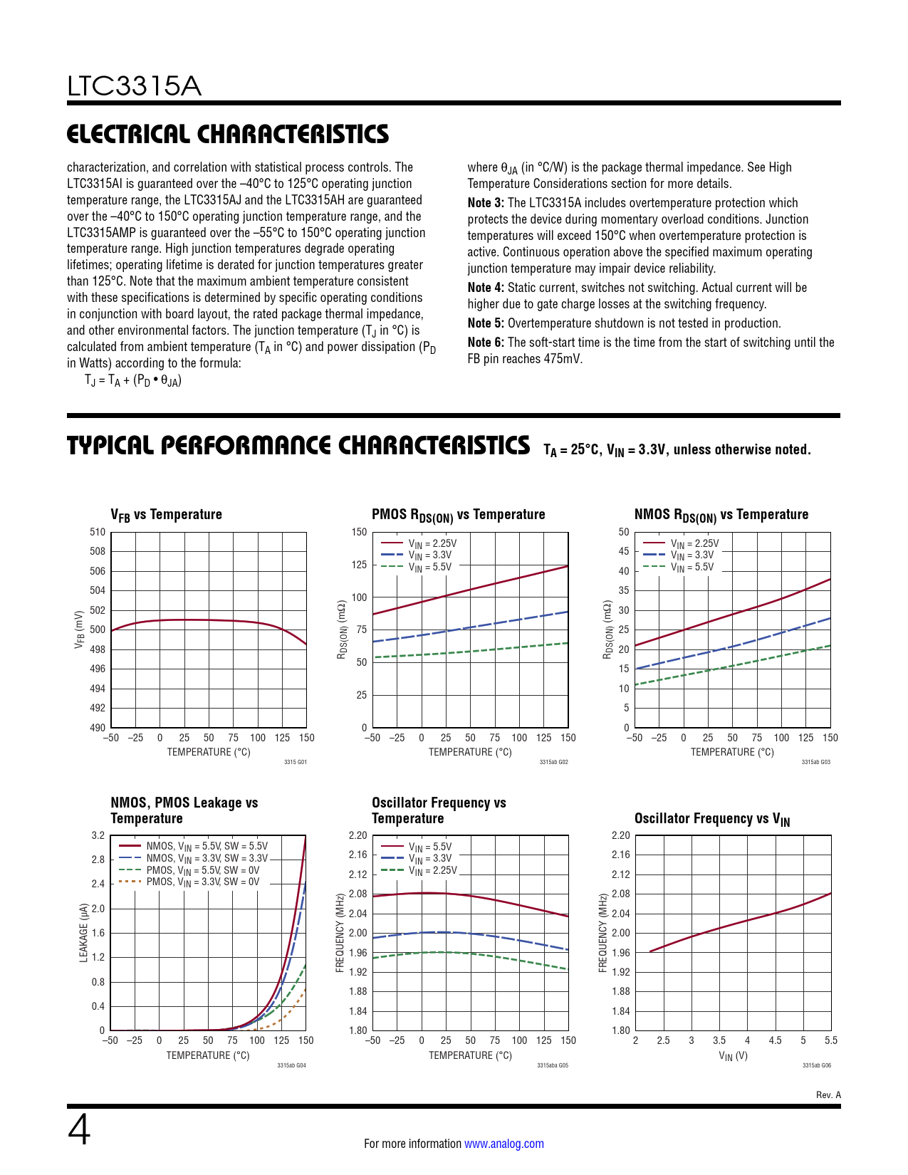 characterization, and correlation with statistical process controls. The where θJA (in °C/W) is the package thermal impedance. See High LTC3315AI is guaranteed over the –40°C to 125°C operating junction Temperature Considerations section for more details. temperature range, the LTC3315AJ and the LTC3315AH are guaranteed