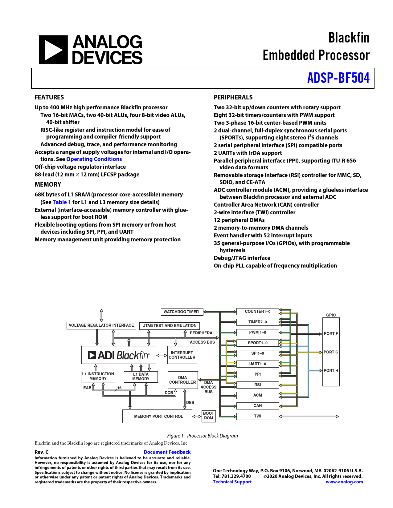 Figure 1. Processor Block Diagram Blackfin and the Blackfin logo are registered trademarks of Analog Devices, Inc.