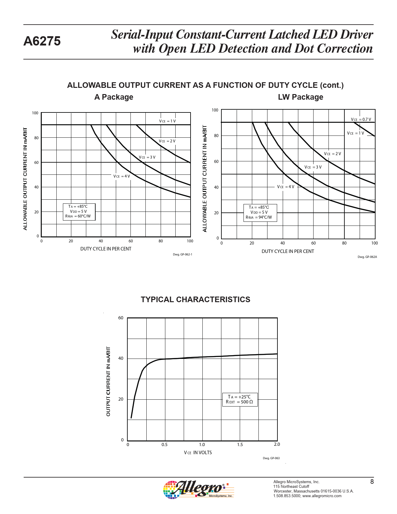 60 40 T 20 A = +25°C R EXT = 500 Ω 0 0 0.5 1.0 1.5 2.0 V CE IN VOLTS Dwg. GP-063 Allegro MicroSystems, Inc. 8 115 Northeast Cutoff Worcester, Massachusetts 01615-0036 U.S.A. 1.508.853.5000; www.allegromicro.com
