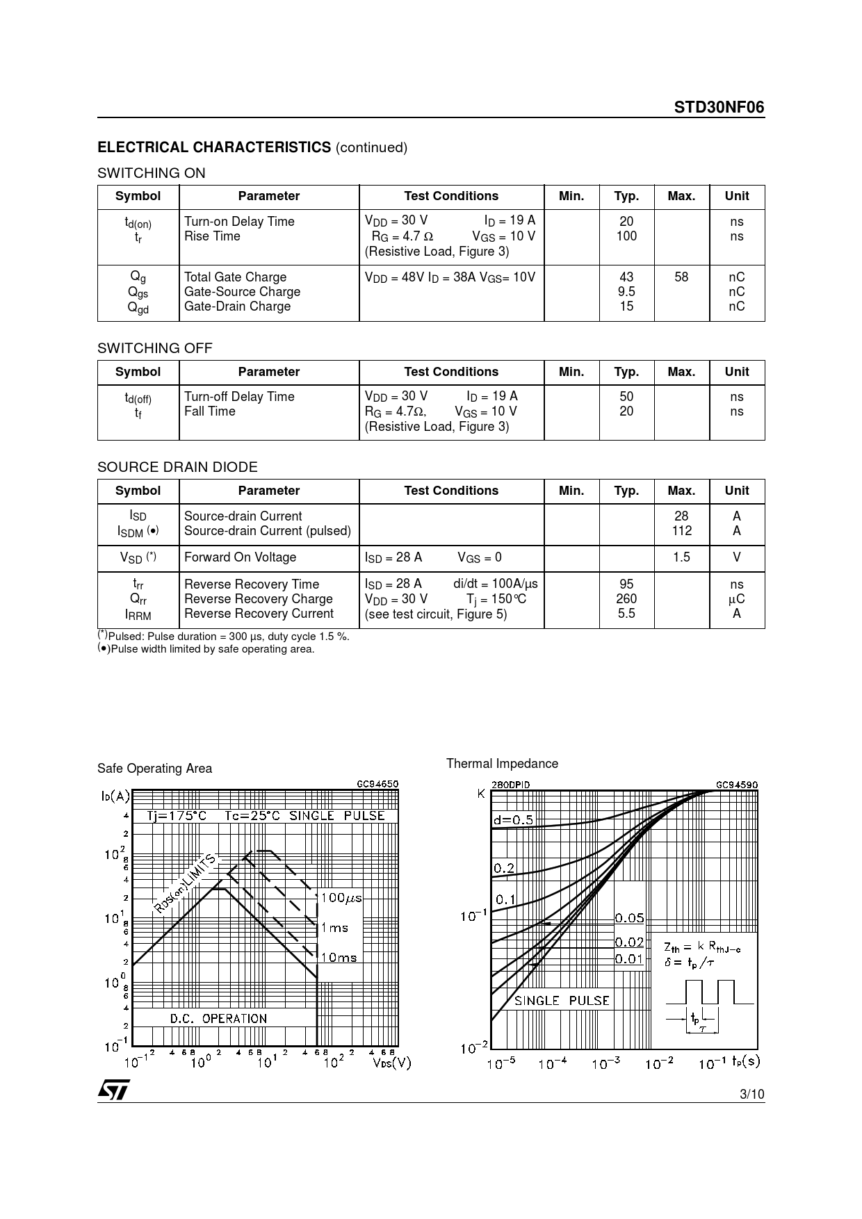 | Páginas / Página | 10 / 3 — STD30NF06. ELECTRICAL CHARACTERISTICS. Symbol. Parameter. Test … |