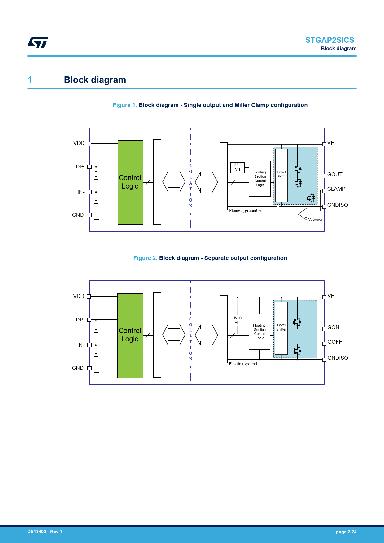 Páginas / Página24 / 2 — STGAP2SICS. Block diagram. Figure 1. Block diagram - Single output and …