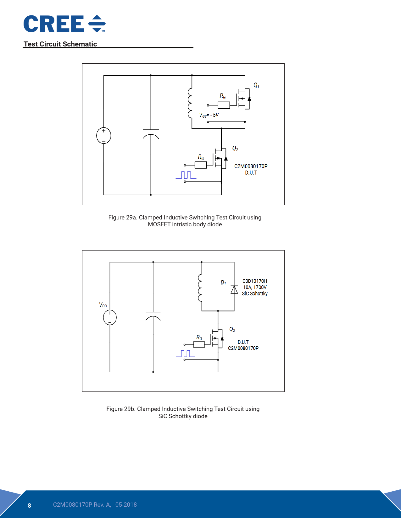 Figure 29a. Clamped Inductive Switching Test Circuit using MOSFET intristic body diode Figure 29b. Clamped Inductive Switching Test Circuit using SiC Schottky diode