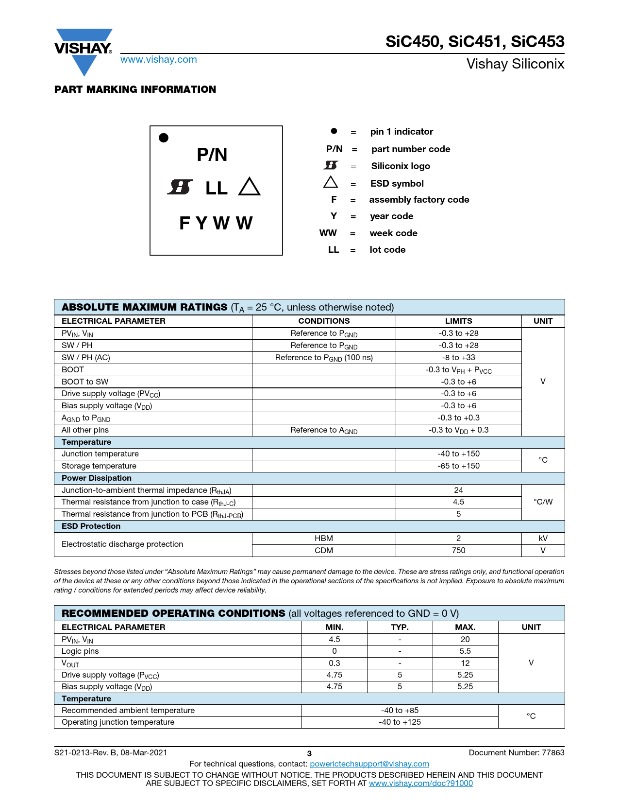 Datasheet SiC450, SiC451, SiC453 (Vishay) - 3