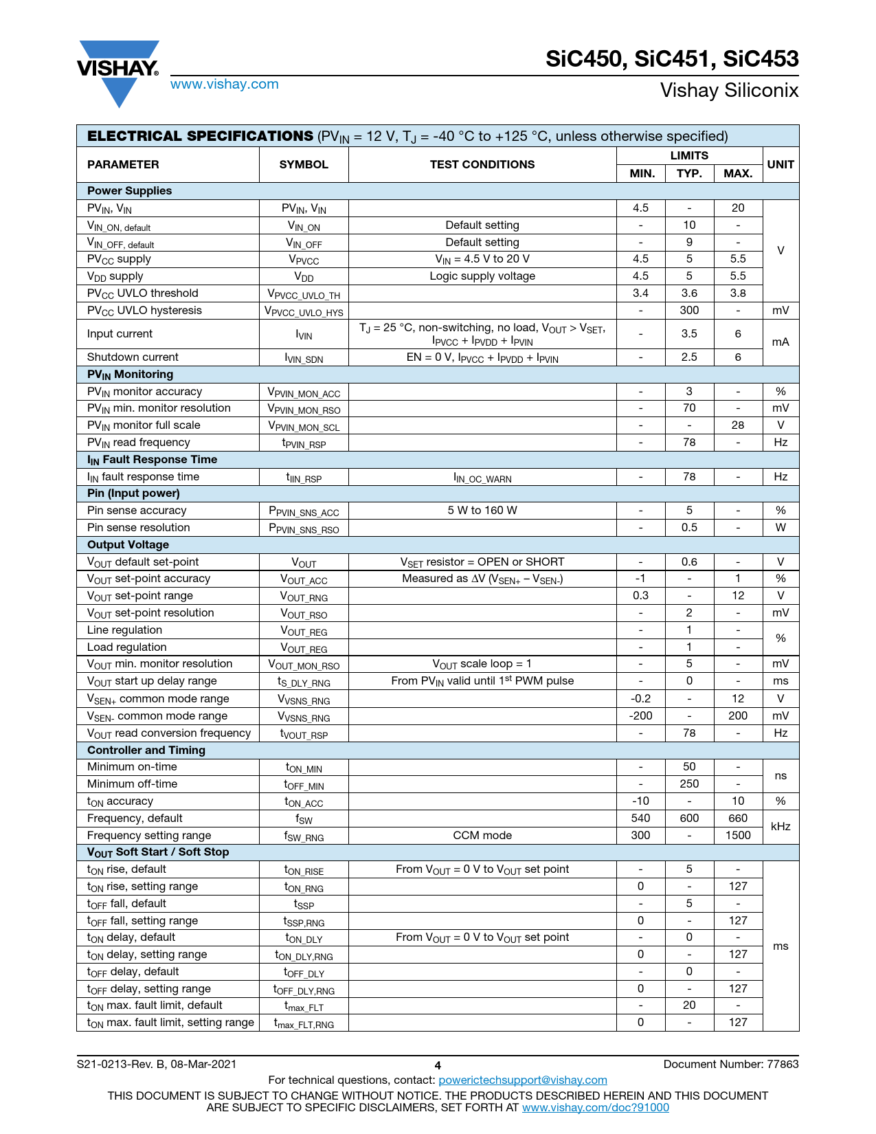 Datasheet SiC450, SiC451, SiC453 (Vishay) - 4