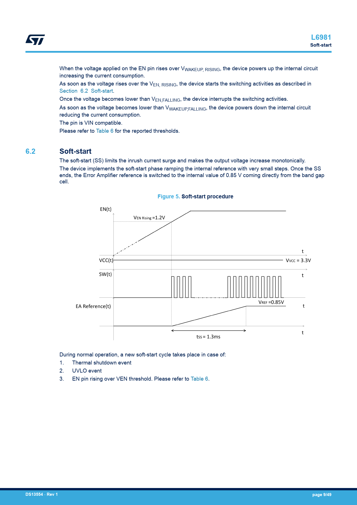L6981. Soft-start. 6.2. Figure 5. Soft-start procedure. DS13554. Rev 1. page 9/49