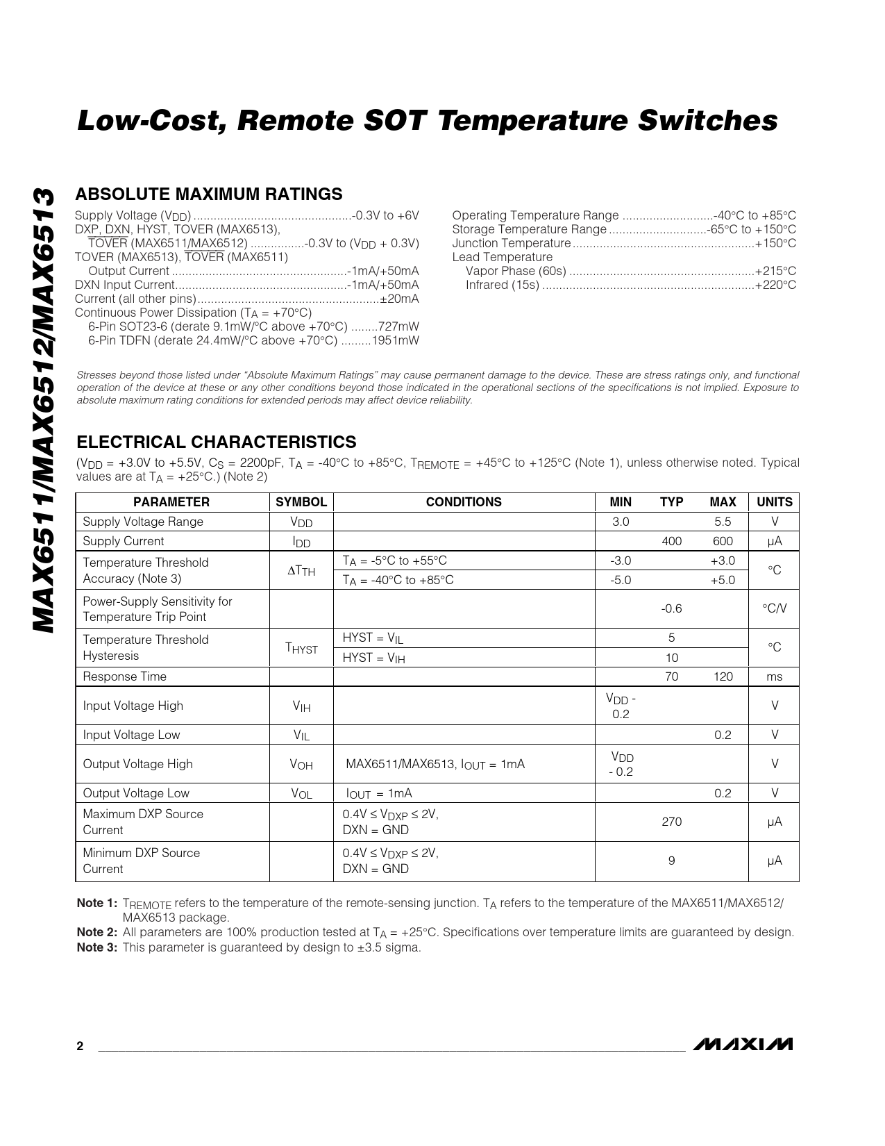 Datasheet MAX6511, MAX6512, MAX6513 (Maxim) - 2