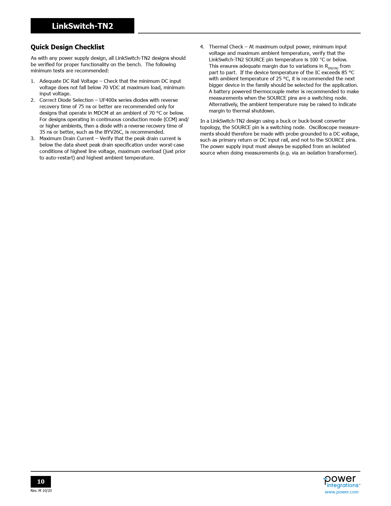 Páginas / Página28 / 10 — LinkSwitch-TN2. Quick Design Checklist