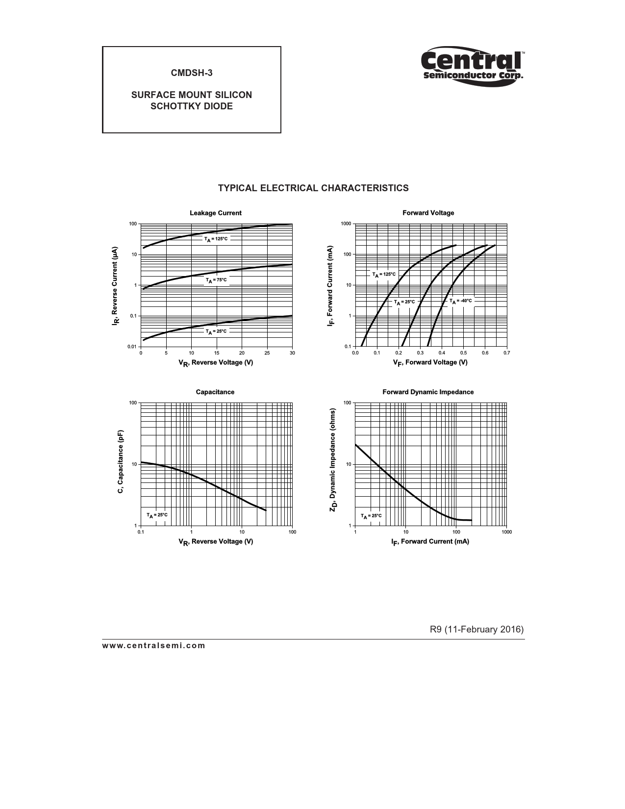 CMDSH-3. SURFACE MOUNT SILICON. SCHOTTKY DIODE. TYPICAL ELECTRICAL CHARACTERISTICS. w w w. c e n t r a l s e m i . c o m