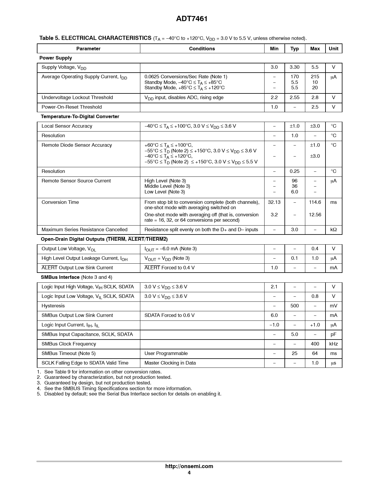 ADT7461 Table 5. ELECTRICAL CHARACTERISTICS