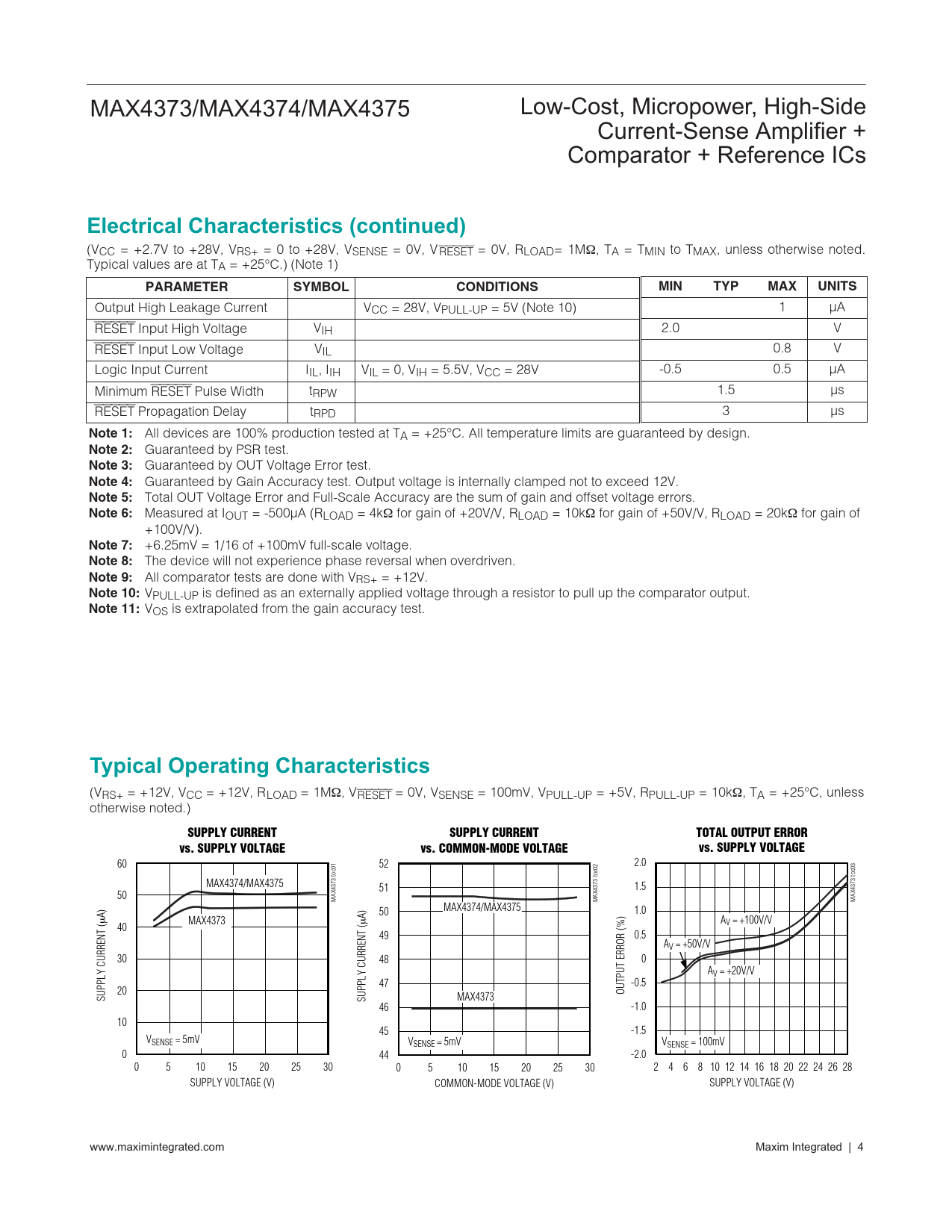 (VCC = +2.7V to +28V, VRS+ = 0 to +28V, VSENSE = 0V, V RESET = 0V, RLOAD= 1MΩ, TA = TMIN to TMAX, unless otherwise noted. Typical values are at TA = +25°C.) (Note 1)