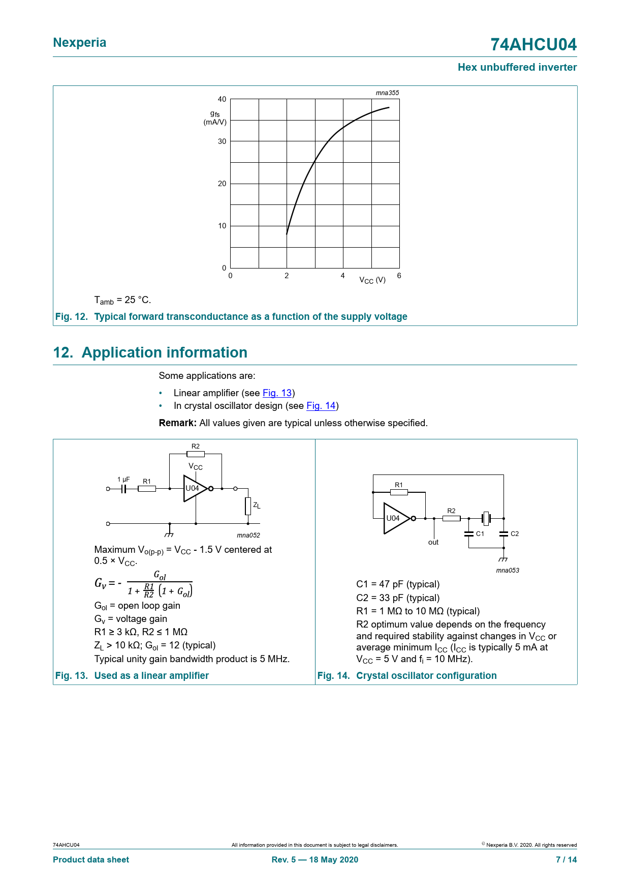 74AHCU04 All information provided in this document is subject to legal disclaimers. © Nexperia B.V. 2020. Al rights reserved