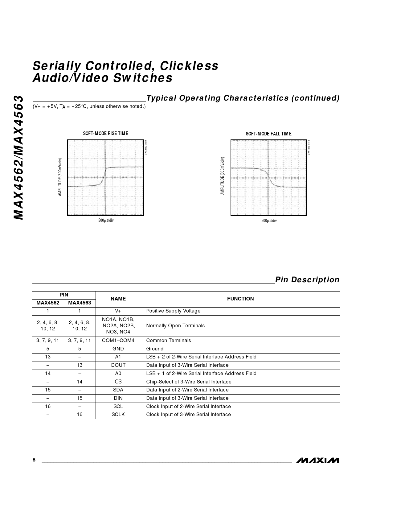 Pin Description PIN NAME FUNCTION MAX4562 MAX4563