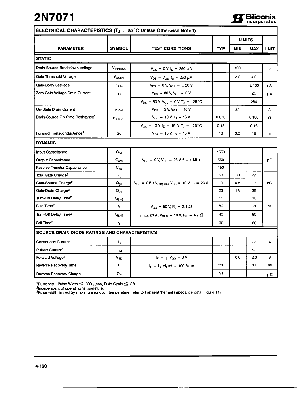 Datasheet 2N7071 (Siliconix)