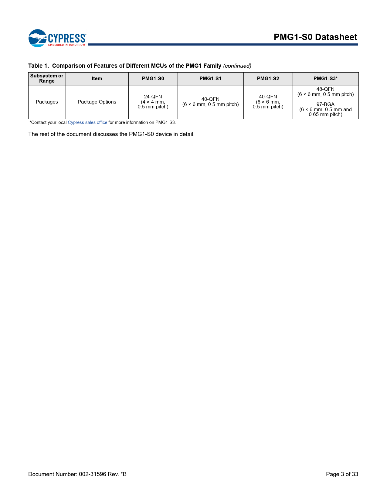 PMG1-S0 Datasheet Table 1. Comparison of Features of Different MCUs of the PMG1 Family