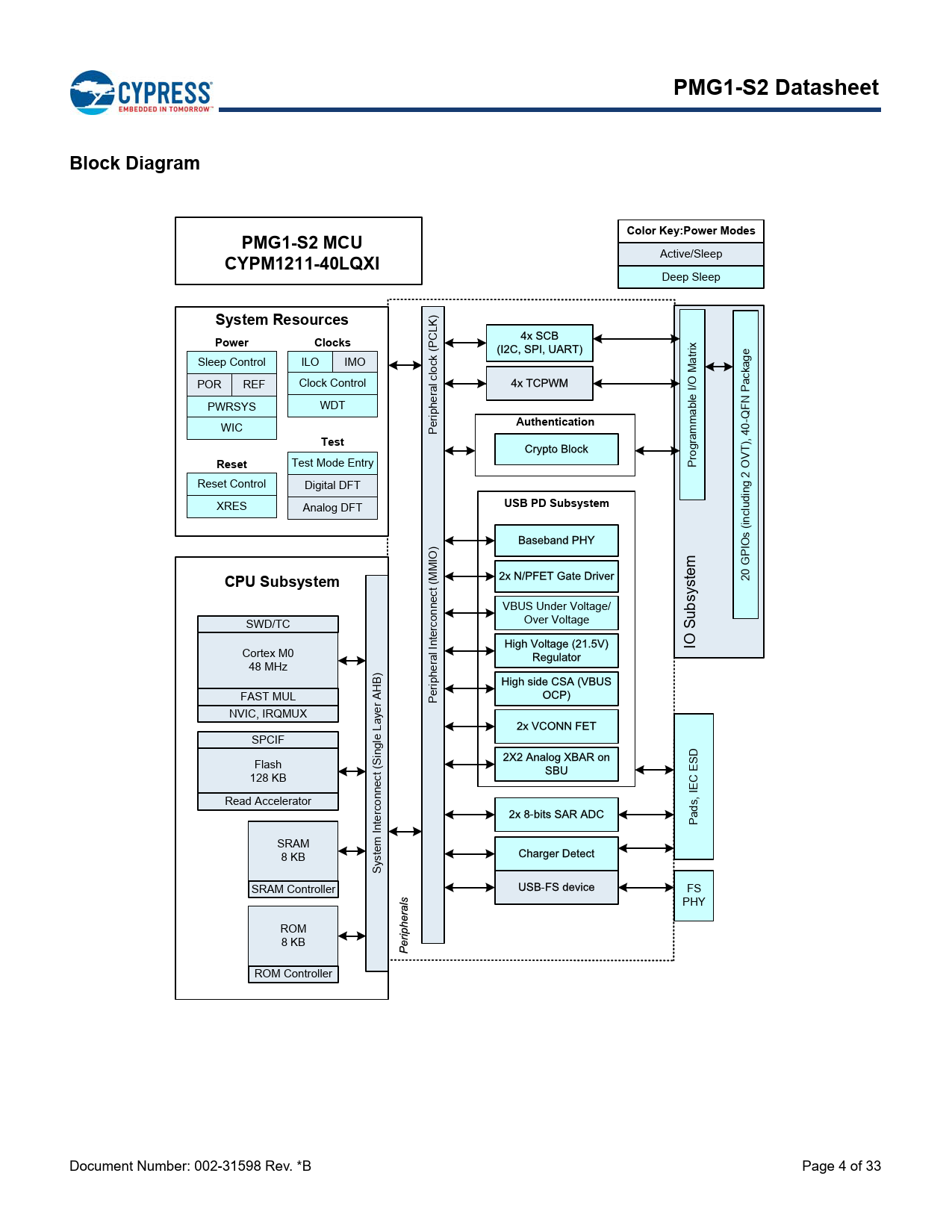 PMG1-S2 Datasheet Block Diagram Color Key:Power Modes PMG1-S2 MCU CYPM1211-40LQXI