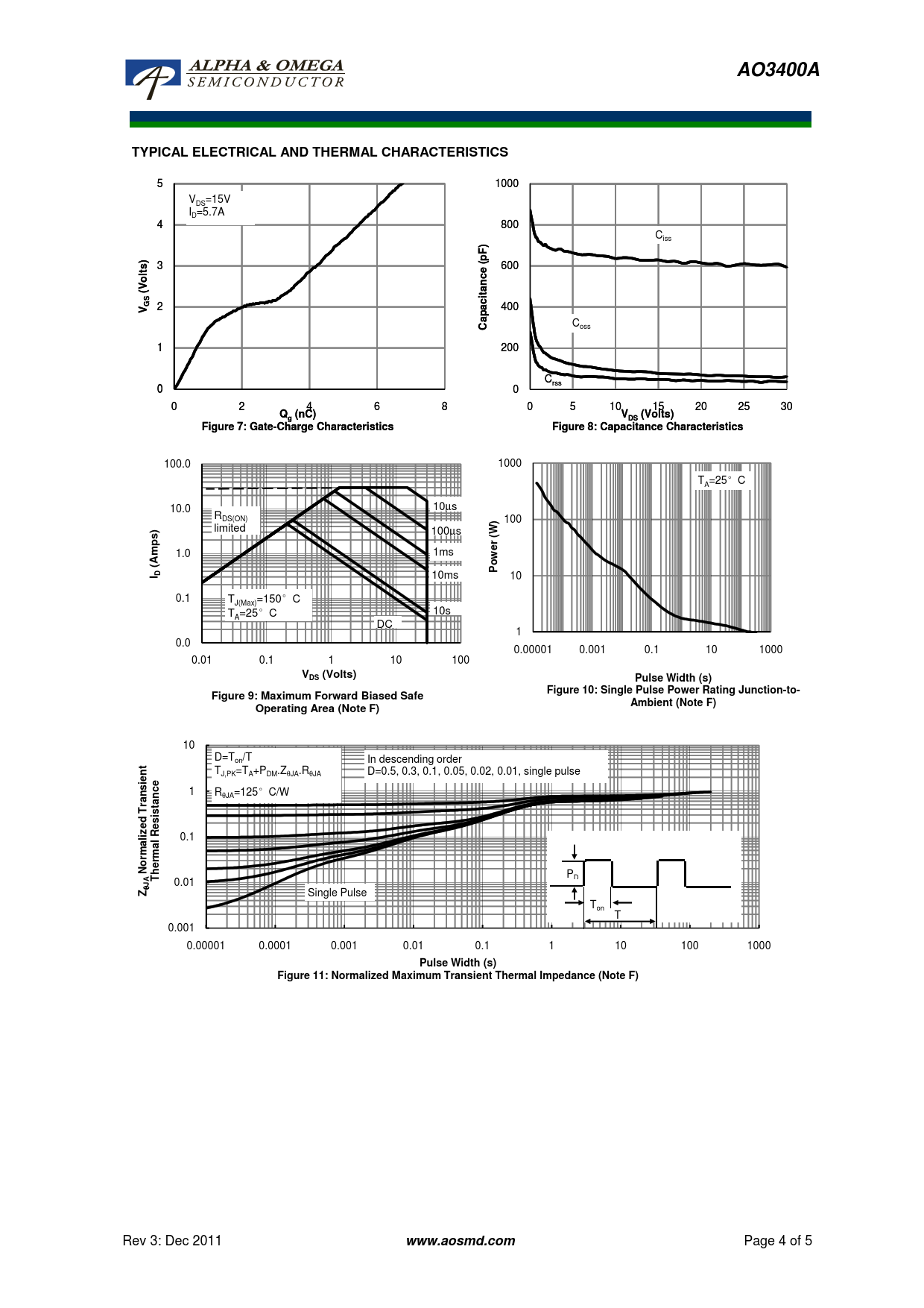 AO3400A TYPICAL ELECTRICAL AND THERMAL CHARACTERISTICS ) F lts lts o ita S G p a C Q (nC) (Vo V lts) Figure r 7 : G G te-Ch C arg