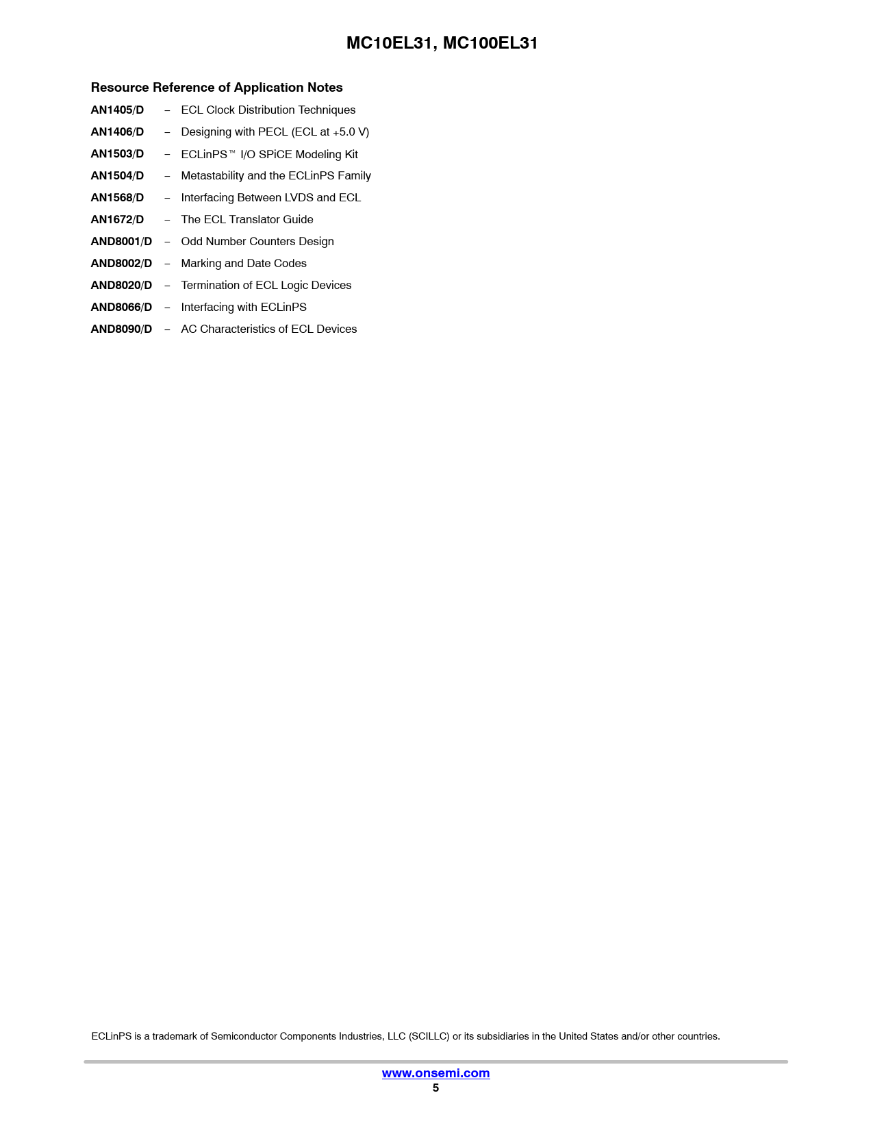 MC10EL31, MC100EL31 Resource Reference of Application Notes AN1405/D AN1406/D AN1503/D AN1504/D AN1568/D AN1672/D AND8001/D