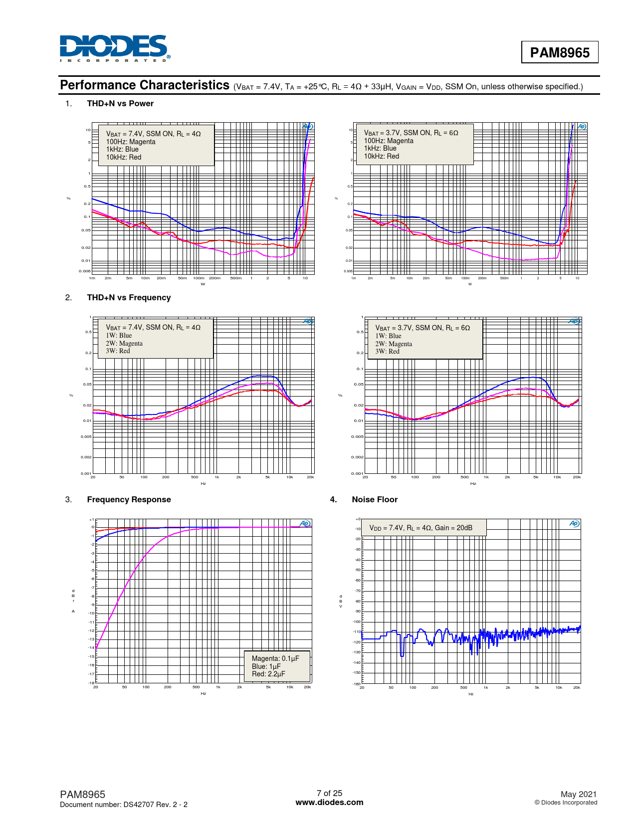 PAM8965. Performance Characteristics. THD+N vs Power. THD+N vs Frequency. Frequency Response. Noise Floor. www.diodes.com