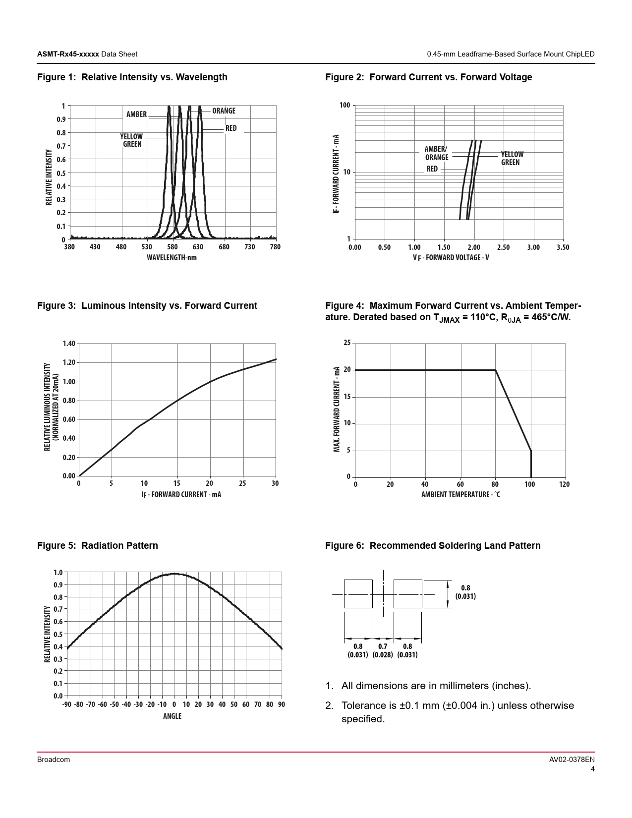 Páginas / Página9 / 4 — ASMT-Rx45-xxxxx. Figure 1: Relative Intensity vs. Wavelength. Figure 2: …