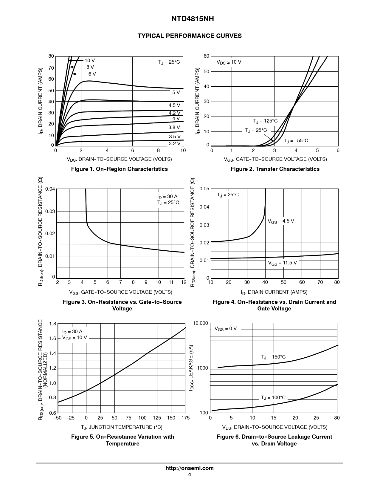 NTD4815NH. TYPICAL PERFORMANCE CURVES. Figure 1. On- Region Characteristics. Figure 2. Transfer Characteristics