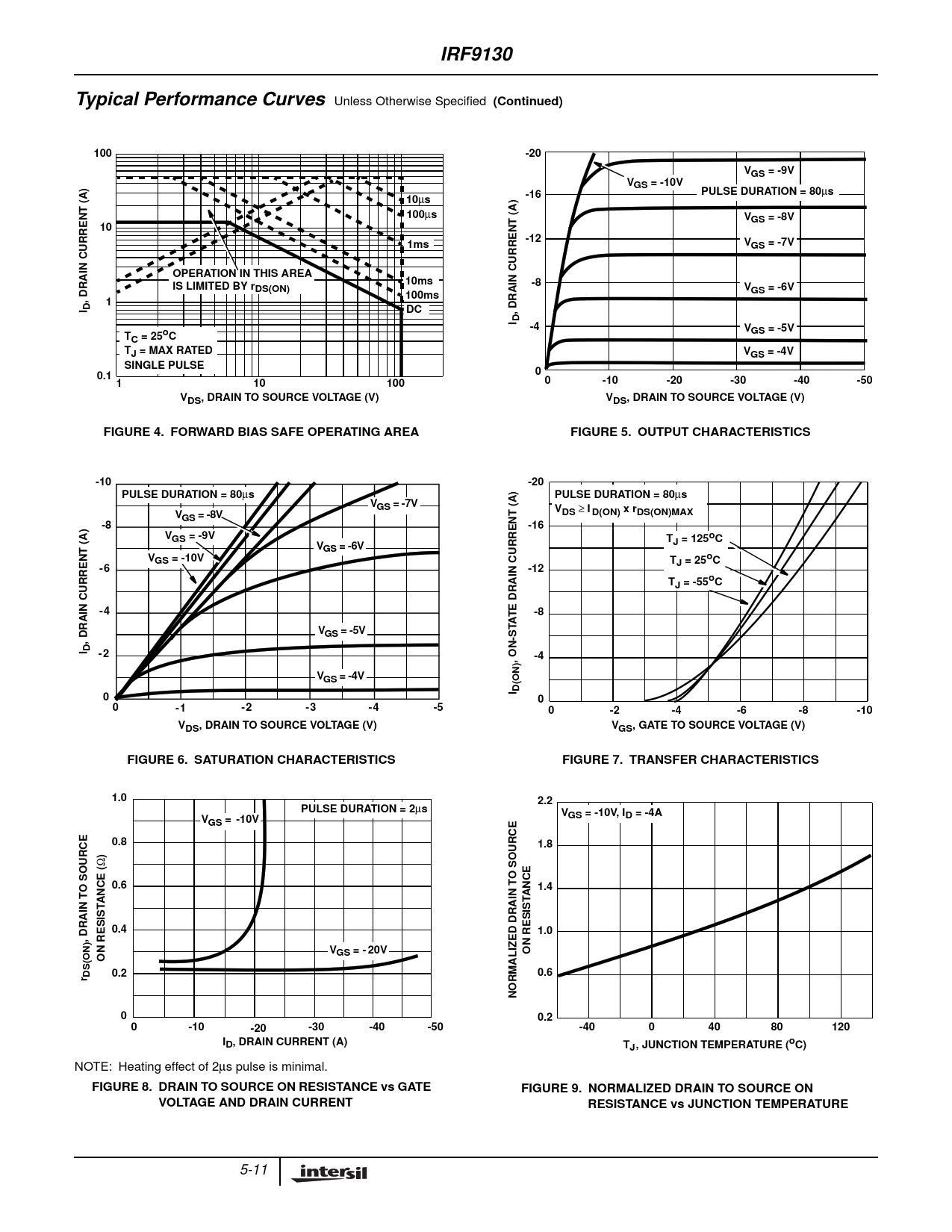 IRF9130. Typical Performance Curves. (Continued). 100. -20. VGS = -9V. VGS = -10V. PULSE DURATION = 80. -16. VGS = -8V. -12. 1ms. VGS = -7V