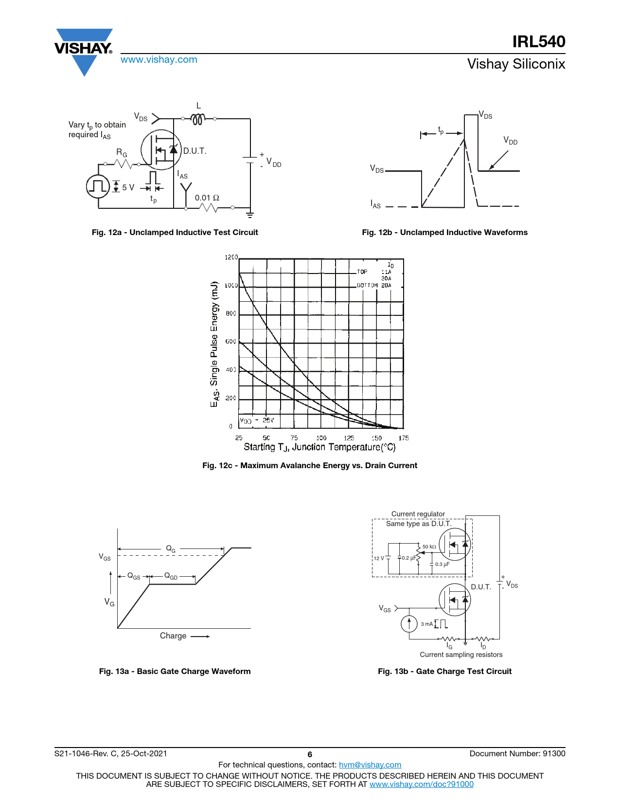 IRL540. Fig. 12a - Unclamped Inductive Test Circuit. Fig. 12b - Unclamped Inductive Waveforms