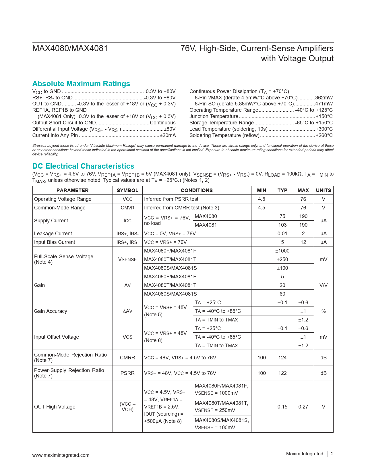 Datasheet MAX4080, MAX4081 (Maxim) - 2