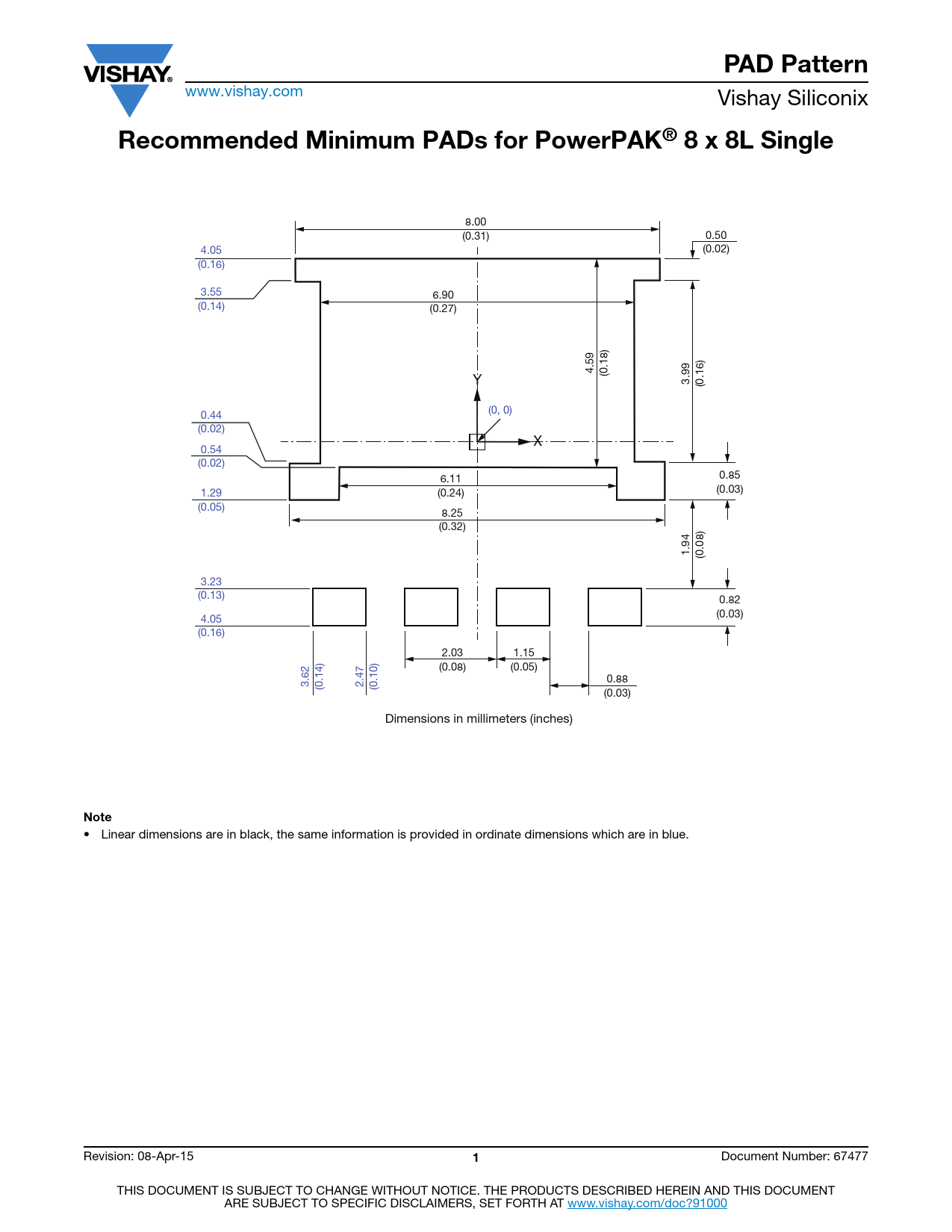 PAD Pattern. Recommended Minimum PADs for PowerPAK® 8 x 8L Single. Note