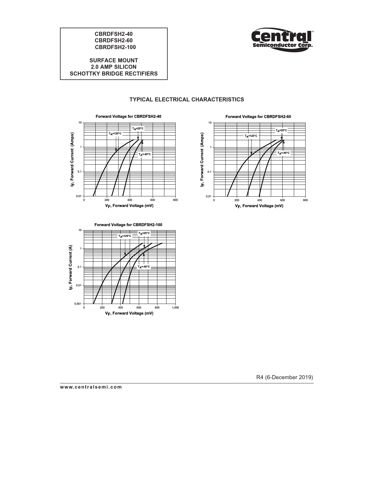 CBRDFSH2-40 CBRDFSH2-60 CBRDFSH2-100 SURFACE MOUNT 2.0 AMP SILICON SCHOTTKY BRIDGE RECTIFIERS TYPICAL ELECTRICAL CHARACTERISTICS