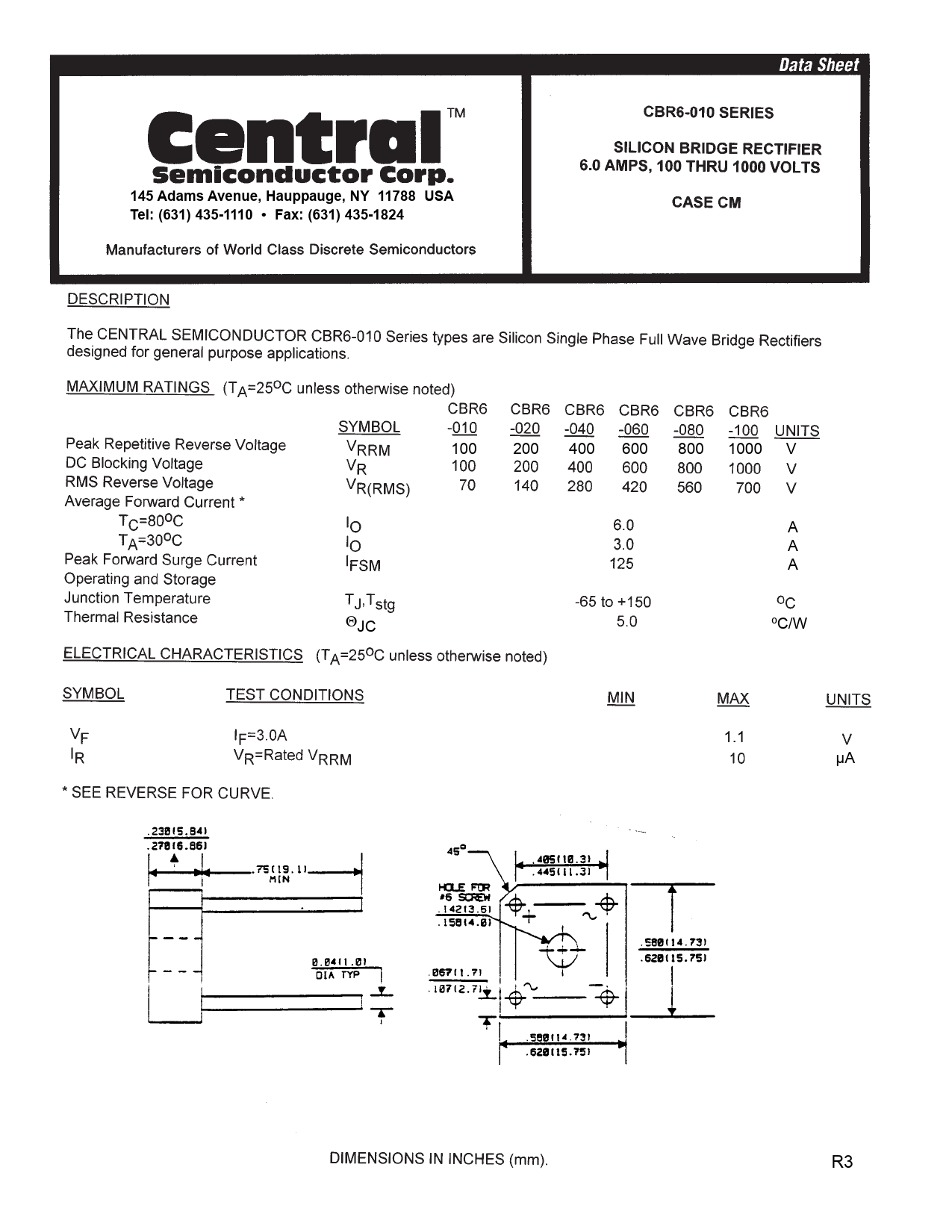 Datasheet CBR6-010 (Central Semiconductor)