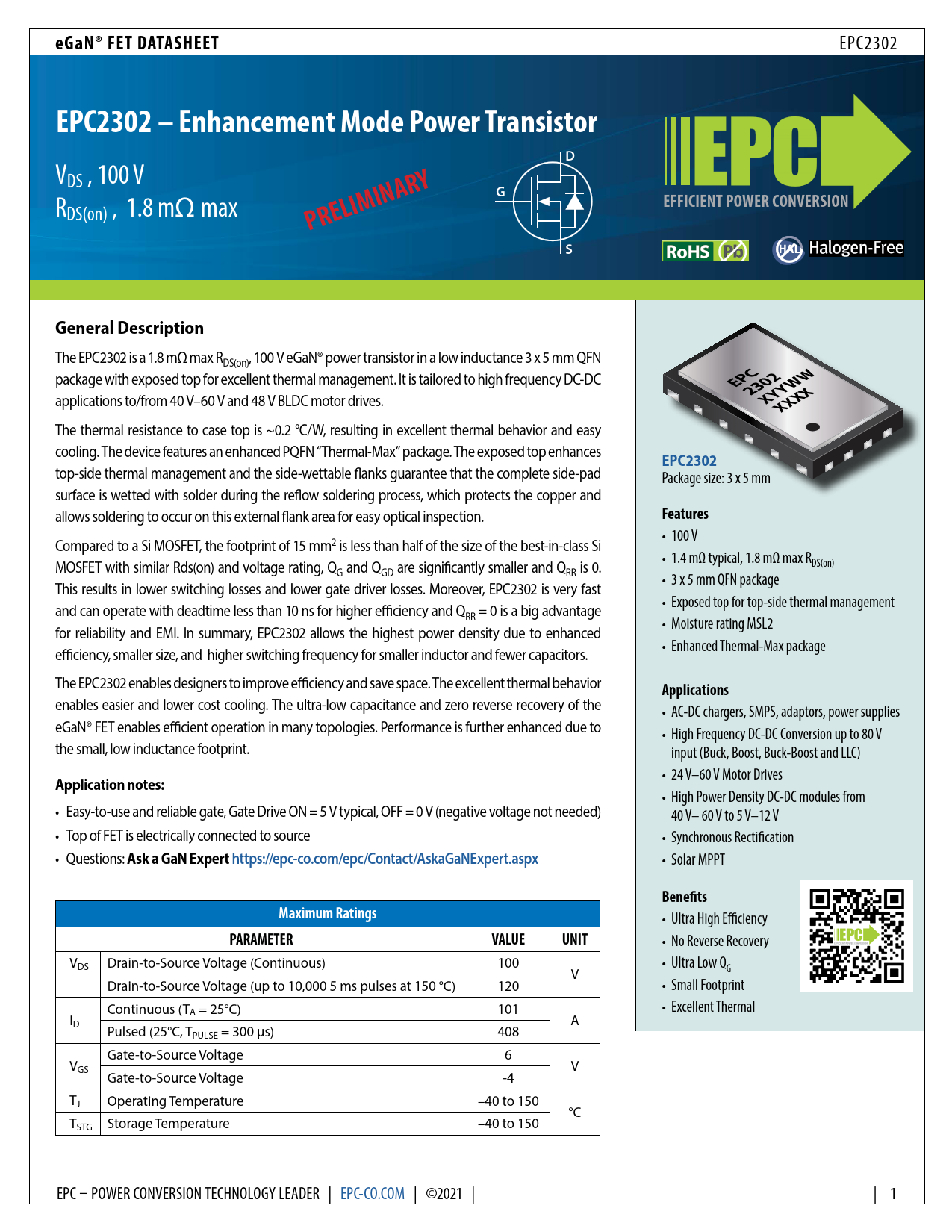 Preliminary Datasheet EPC2302 (Efficient Power Conversion)
