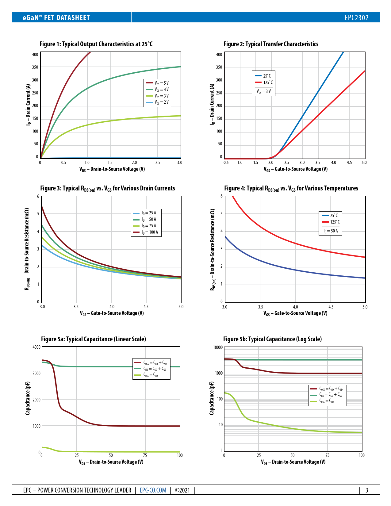 eGaN® FET DATASHEET. Figure 1: Typical Output Characteristics at 25°C. Figure 2: Typical Transfer Characteristics