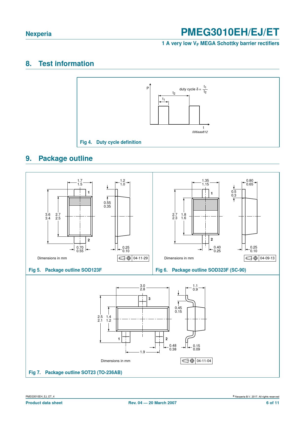 Nexperia. PMEG3010EH/EJ/ET. 1 A very low VF MEGA Schottky barrier rectifiers. Test information. Fig 4. Duty cycle definition