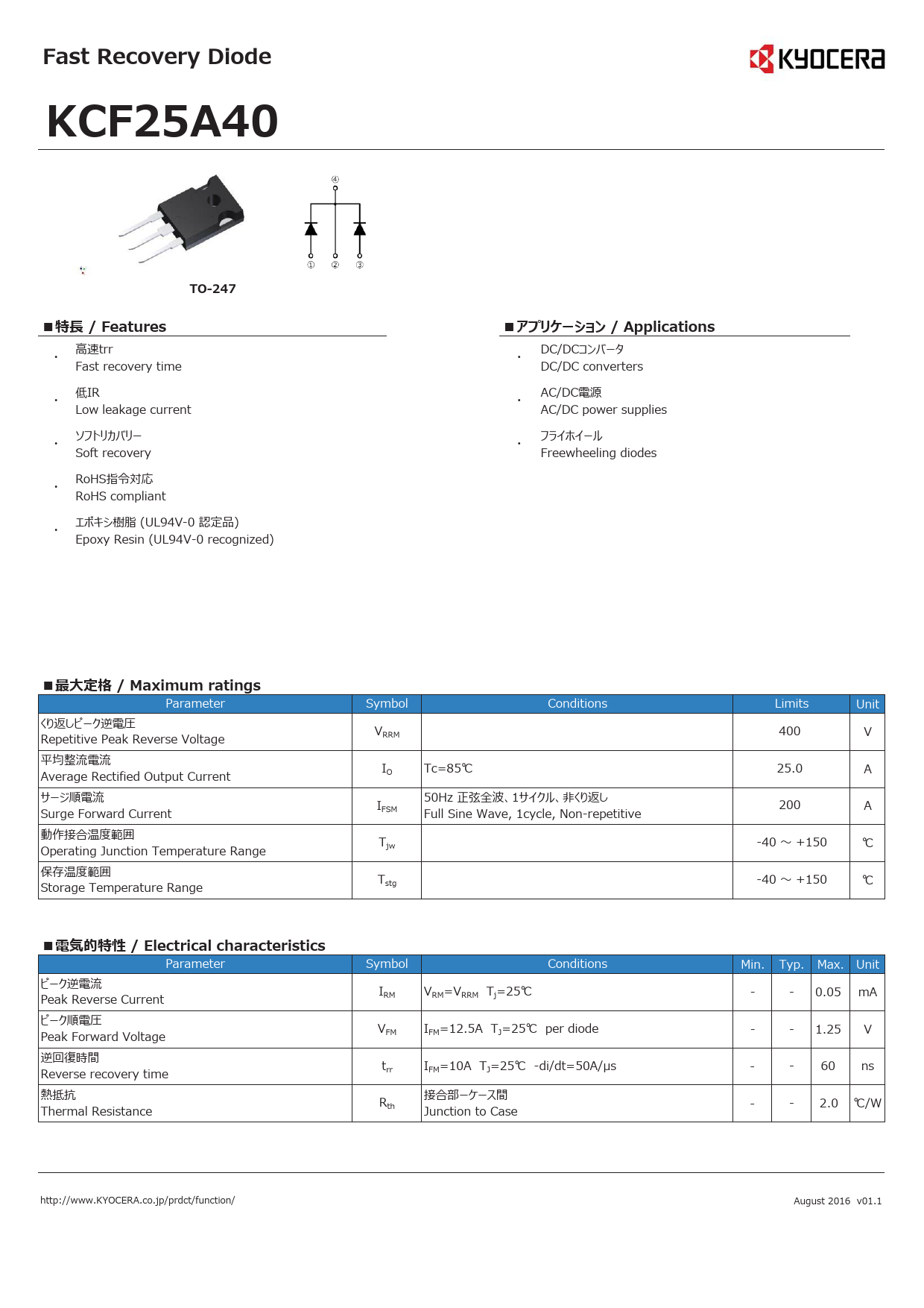 )DVW5HFRYHU\'LRGH .&)$ 72 ્ٹশ)HDWXUHV ٹ崊崿嵒崙嵤崟嵏嵛$SSOLFDWLRQV 嵣 ৈசWUU