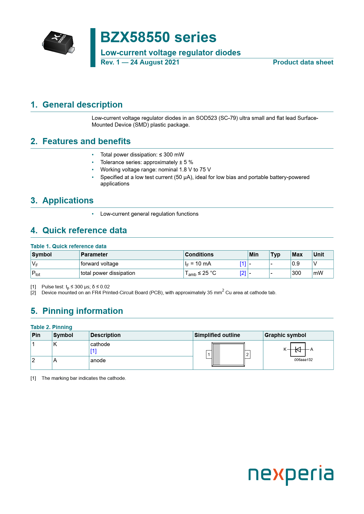 Datasheet BZX58550 Nexperia, Revisión: 24082021
