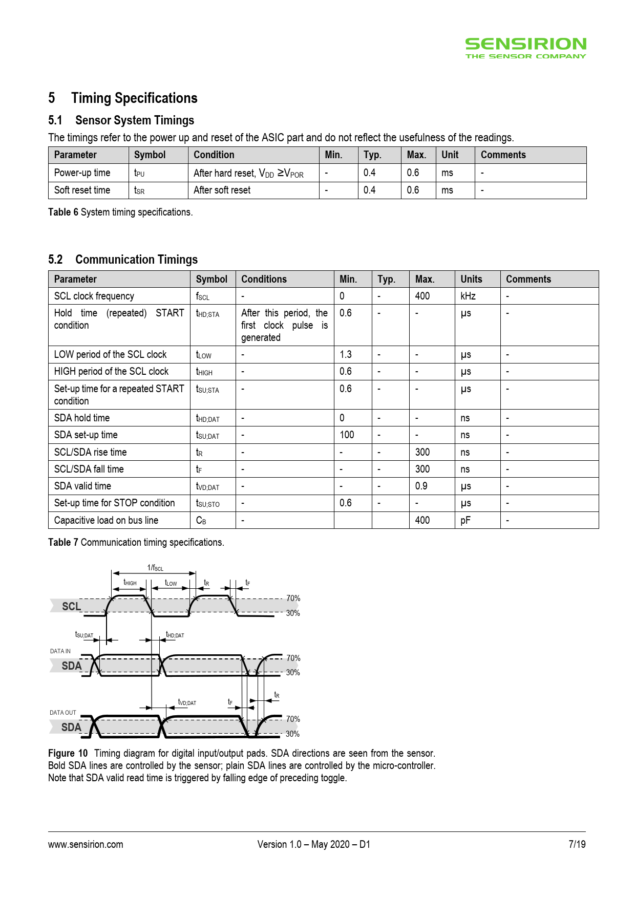5 Timing Specifications 5.1 Sensor System Timings. Parameter. Symbol. Condition. Min. Typ. Max. Unit. Comments. Table 6