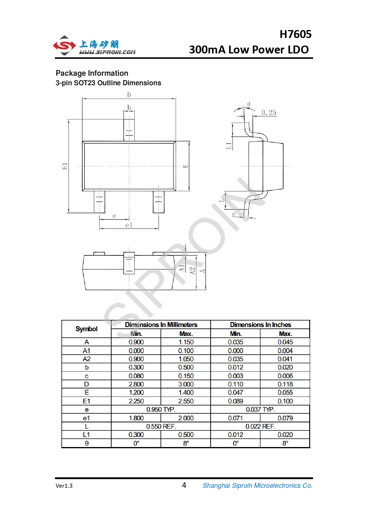 SIPROIN Ver1.3 4 Shanghai Siproin Microelectronics Co.