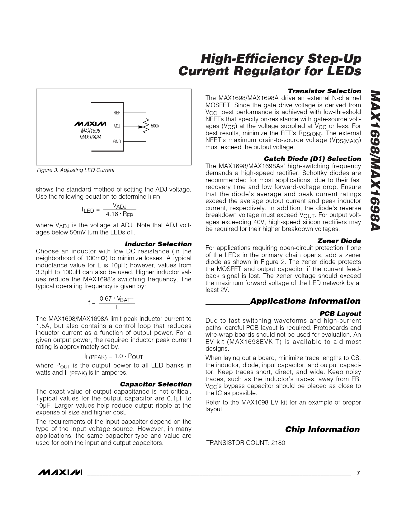 High-Efficiency Step-Up Current Regulator for LEDs MAX1698/MAX1698A Transistor Selection Catch Diode (D1) Selection