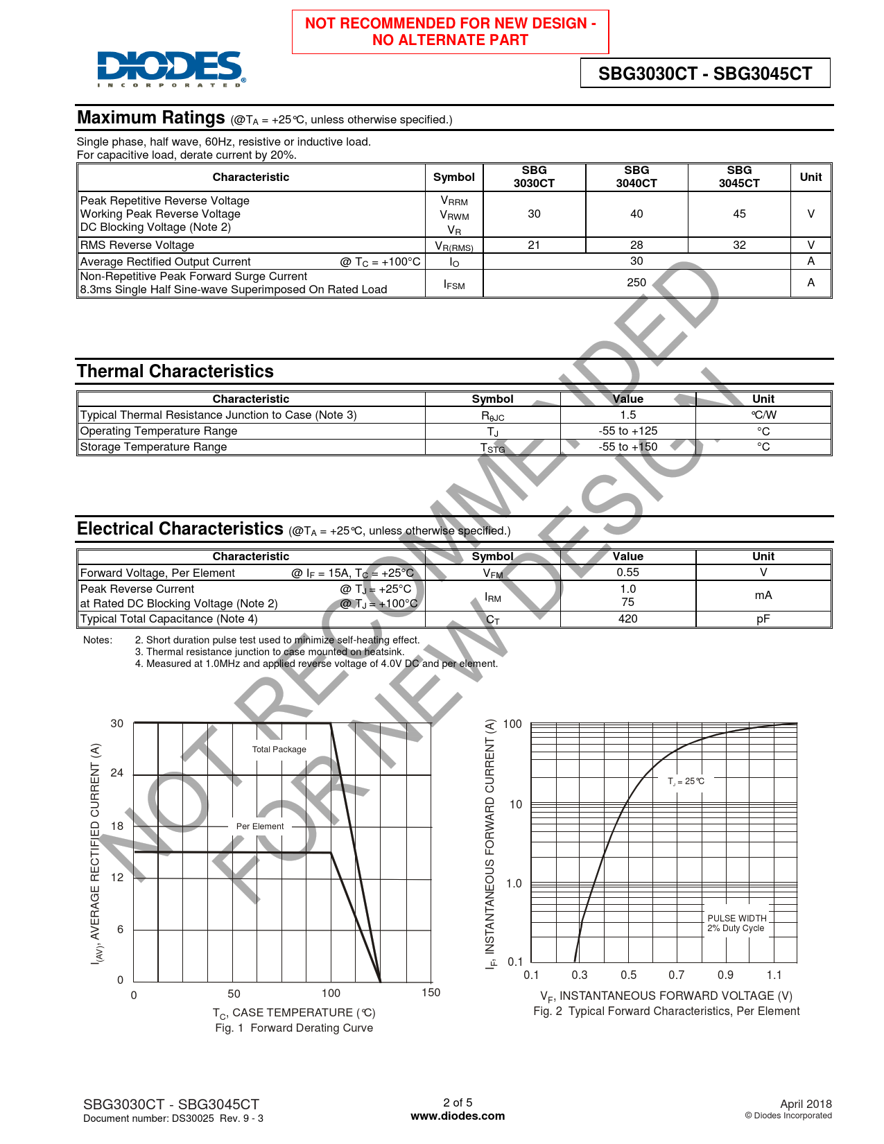 NOT RECOMMENDED FOR NEW DESIGN -. NO ALTERNATE PART. SBG3030CT - SBG3045CT. Maximum Ratings. SBG. Characteristic. Symbol. Unit. 3030CT